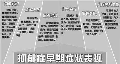 轻度抑郁症病人常伴有多种多样的躯体症状,如头痛、背痛、四肢痛、腰痛等,但原因不明,医院检查找不到器质性病变。早期抑郁症状表现为不明原因的腹胀、腹泻、厌食、恶心及胃部不适,或者出现莫明其妙的心慌、心悸,以及涉及全身各个系统和器官的不适。
